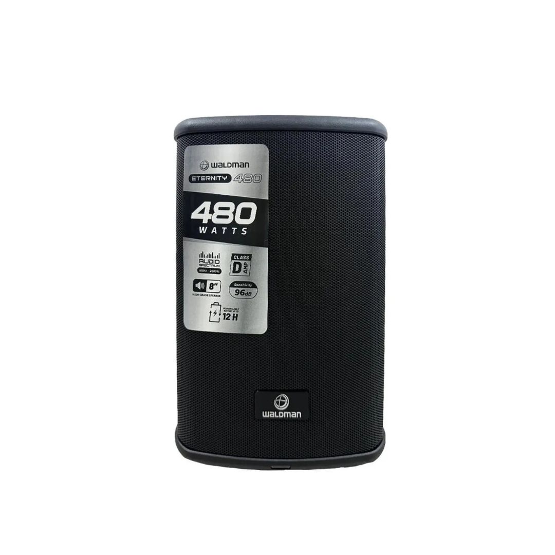 A Eternity 480 (ET-480) com bateria da marca Waldman é uma Caixa de Som Ativa com amplificador classe D, 120w de potência RMS, 480w de pico e alto falante de 8 polegadas que foi desenvolvida para ser utilizada em diversas aplicações como: palestras, eventos ao vivo, lojas, bares, festas, entre diversas ocasiões.