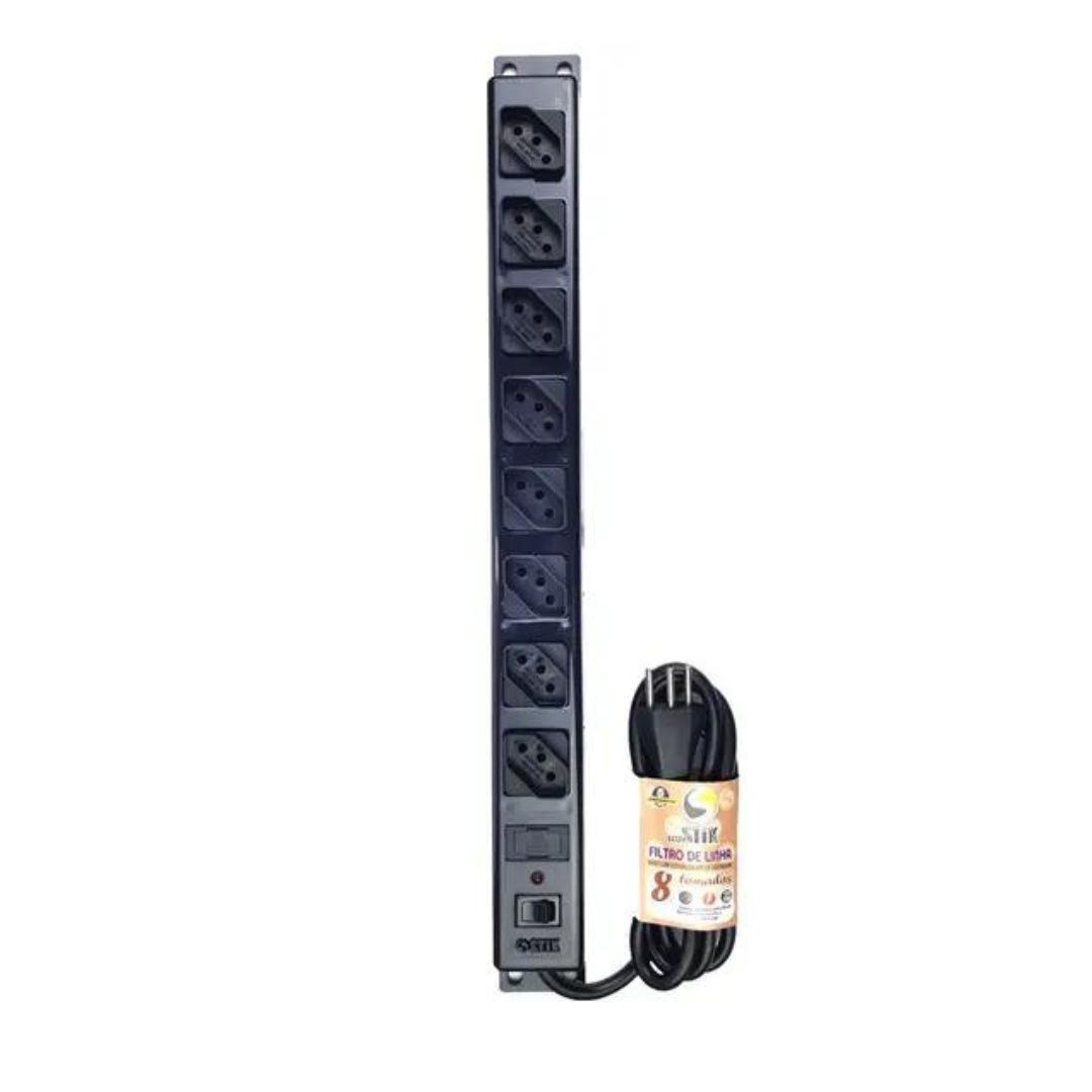 O Filtro de Linha de 8 tomadas tem por finalidade promover a extensão da tomada de energia a ele conectada para 8 entradas protegidas contra sobrecarga (10 A) e curto-circuito através do fusível de proteção de rede.