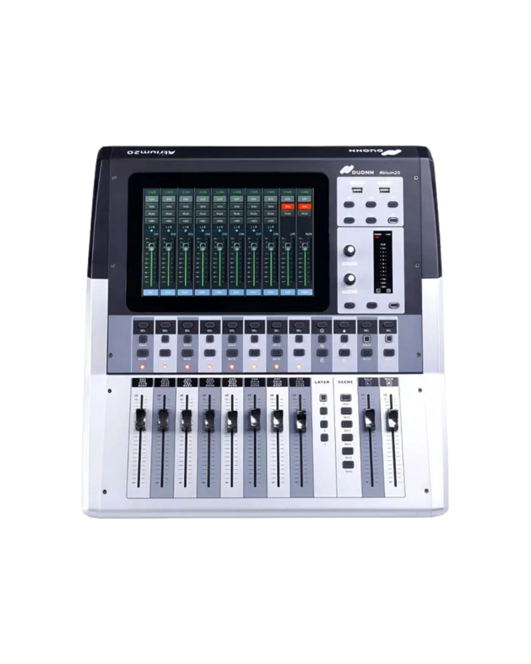O Duonn Atrium 20 reúne todas as ferramentas necessárias para mixar em um console digital, com poucos atalhos é possível navegar por todas as funções do software, faders de 100 garantem a incrível sensação de ter a mix em suas mãos. Mixar é arte, e baseado nisso Atrium 20 entrega a oportunidade de fazer arte fisicamente no console ou através de controle via dispositivos remotos.