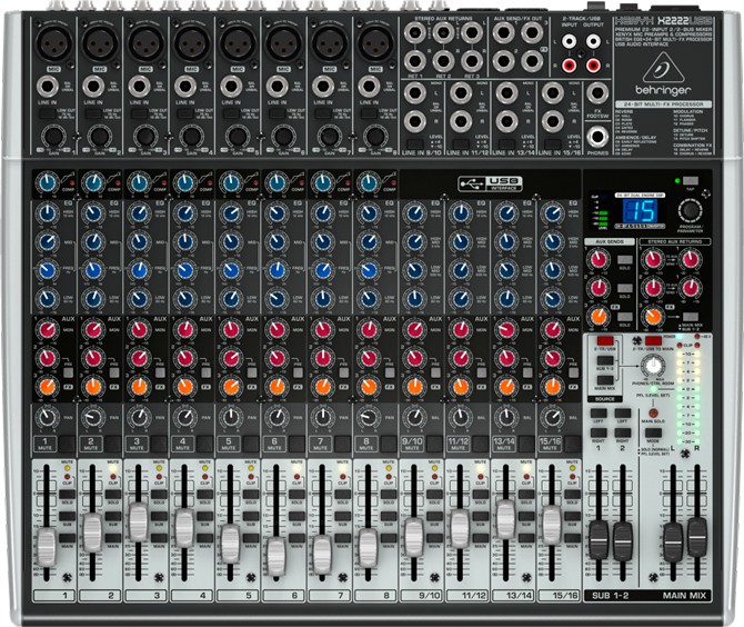 A mesa de som Xenyx X2222USB da Behringer é um mixer analógico de baixíssimo ruído e grande headroom, equipado com pré-amplificadores para microfone Xenyx de altíssimo desempenho, comparáveis a pré-amplificadores de grande renome. Possui ainda compressores de estúdio "One-Knob" de fácil uso com um único potenciômetro em todos os canais mono. A mesa de som Xenyx X2222USB têm EQs de 3 bandas estilo 'britânico' e um novo processador de efeitos para estúdios com 16 presets editáveis incluindo reverb, chorus, flanger, delay, pitch shifter, multi-efeitos, função Tap e configuração de parâmetros do usuário armazenáveis.