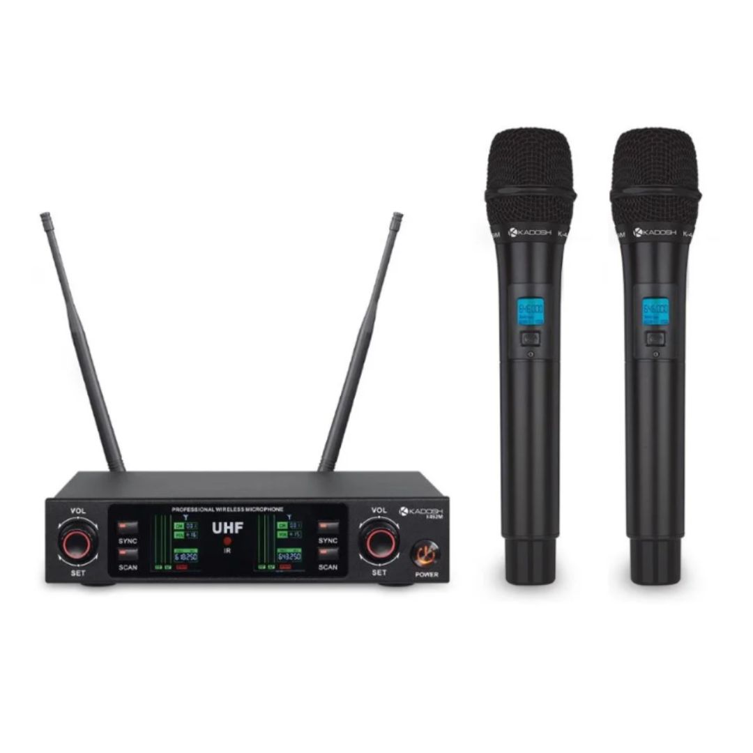Microfone duplo sem fio UHF destinado ao uso em pequenos eventos e locais de pequeno porte, podendo utilizar até 4 sistemas do mesmo modelo desde que o usuário atenda as regras de uso do produto - Não colocar as bases em cima da outra, não cruzar as antenas de outras bases, dar uma distância mínima necessária de 7 cm de cada base, fazer coordenação de frequências - aconselha-se 6Mhz.