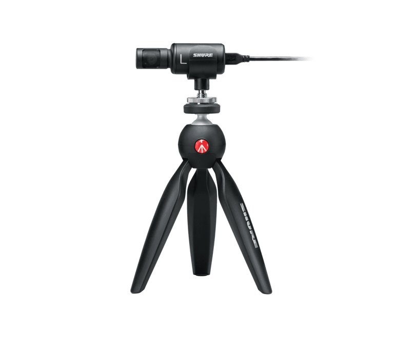 O Kit MV88+ Vídeo Kit é o seu equipamento de gravação profissional móvel. O pacote inclui tripé Manfrotto PIXI, braçadeira de telefone e clipe de microfone para montagem em sapato, cabos USB-C e raios, tornando-o preparado para a captura de áudio e/ou vídeo imediatamente. Os aplicativos de áudio e vídeo ShurePlus MOTIV gratuitos permitem o controle de gravação e a capacidade de salvar e compartilhar seu conteúdo em vários formatos.