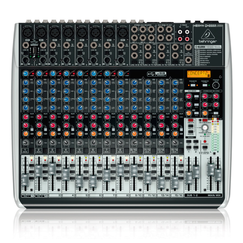O mixer de áudio QX2222USB, possui recursos que permite você obter facilmente um som de alta qualidade graças aos seus 8 pré-amplificadores de microfone XENYX e seus equalizadores. Os compressores "de um único botão" são fáceis de usar e proporcionam controle dinâmico para o máximo em punção e clareza, respeitando todas as potencias e emoções que você embala em cada nota. Adicione a isso o nosso processador KLARK TEKNIK FX com 32 predefinições de estúdio com dois parâmetros endireitáveis, função de toque e configurações de parâmetros de usuário armazenáveis.