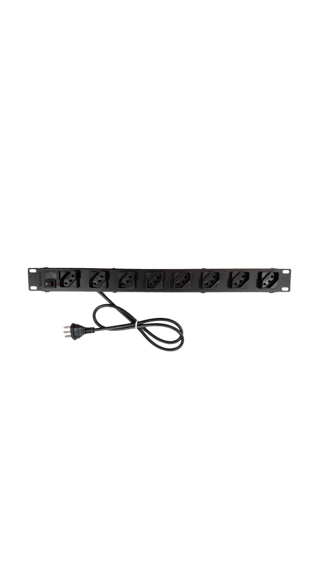 A régua para rack 19 da marca Ipec, possui conjunto com 8 tomadas, apresenta cabo de 1,10 metros, estrutura metálica contendo pintura eletrostática, operando na frequência de 50-60 Hz.