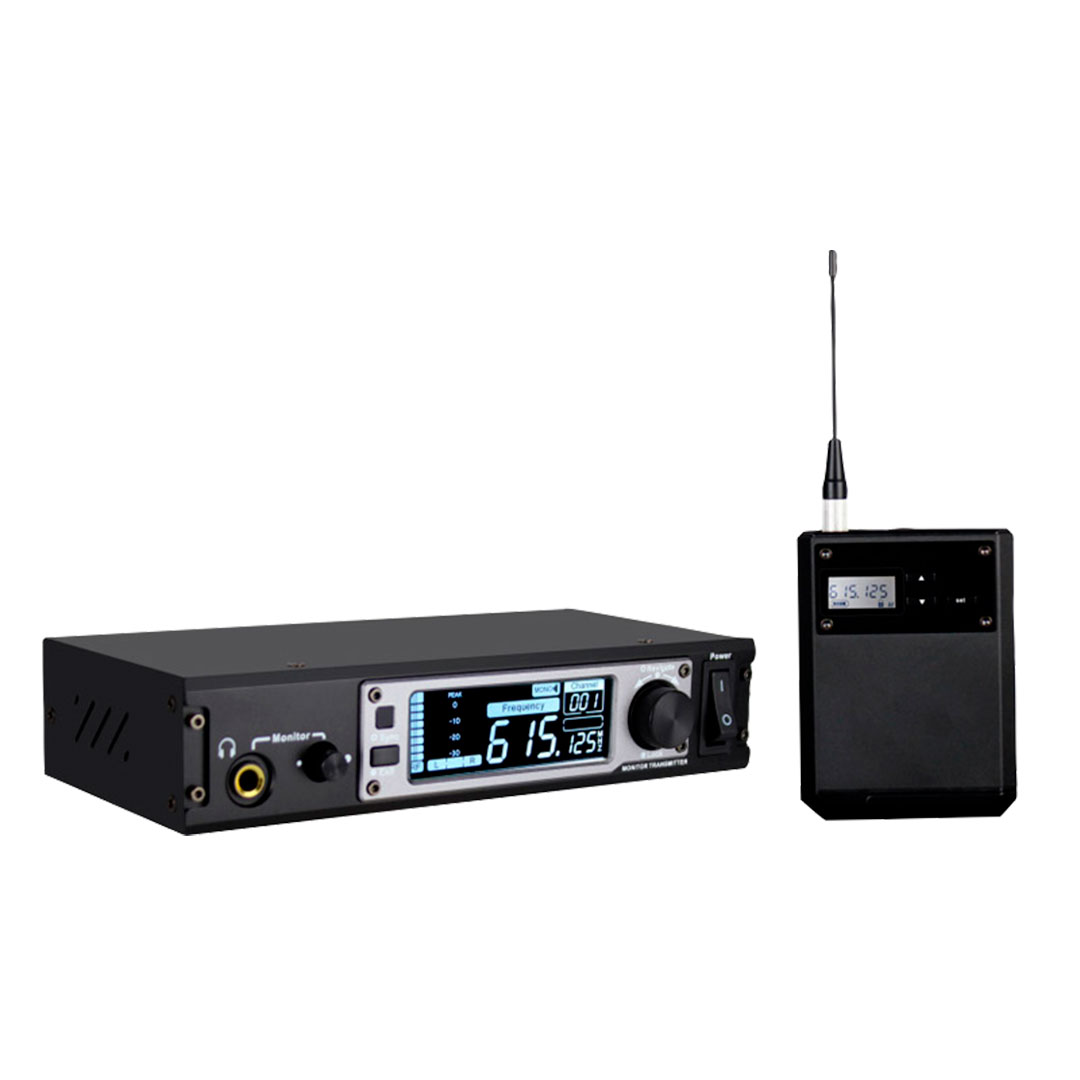 Escolha o instrumento que deseja ouvir. Transmissor padrão rack moderno e com múltiplos recursos. Receptor suporta altos níveis de pressão sonora -130 db SPL. Antena removível com conexão BNC, preparado para grandes eventos.