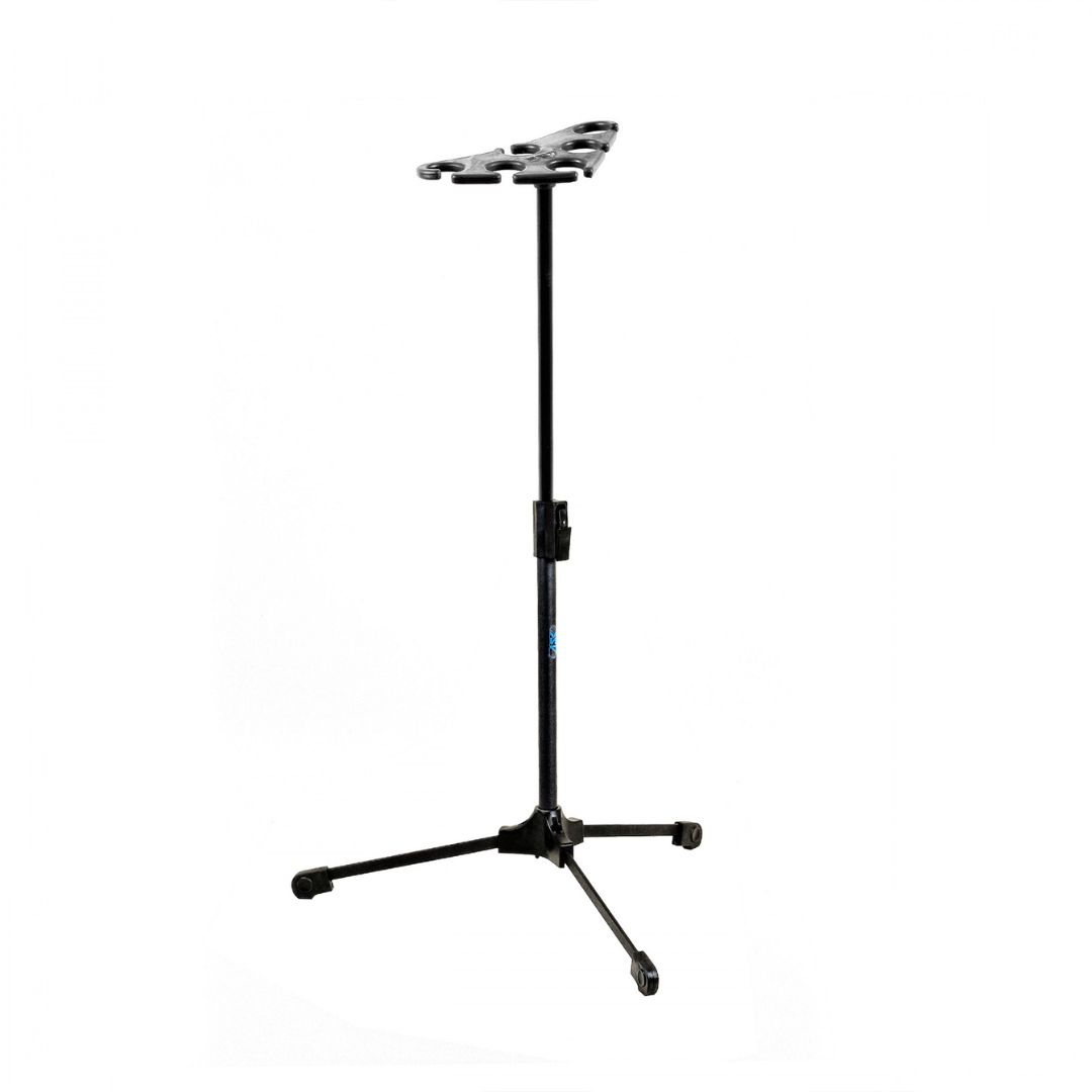 Descanso para microfone e banner com tripé retrátil. Comporta até 6 microfones.